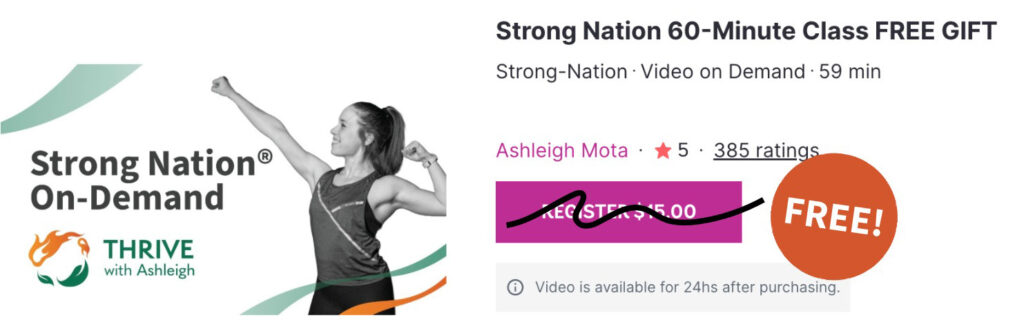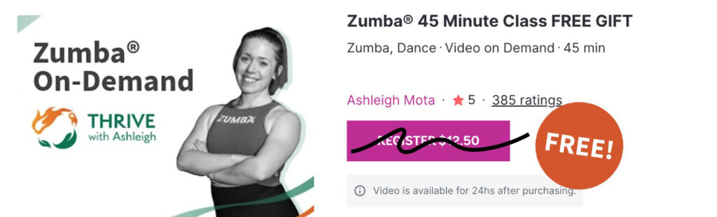 My on-demand class library includes classes filmed during 2020 and 2021. Yoga classes now available and a new Zumba content will be released with your 2026 THRIVE with Ashleigh Class Challenge! Stay tuned for more details.